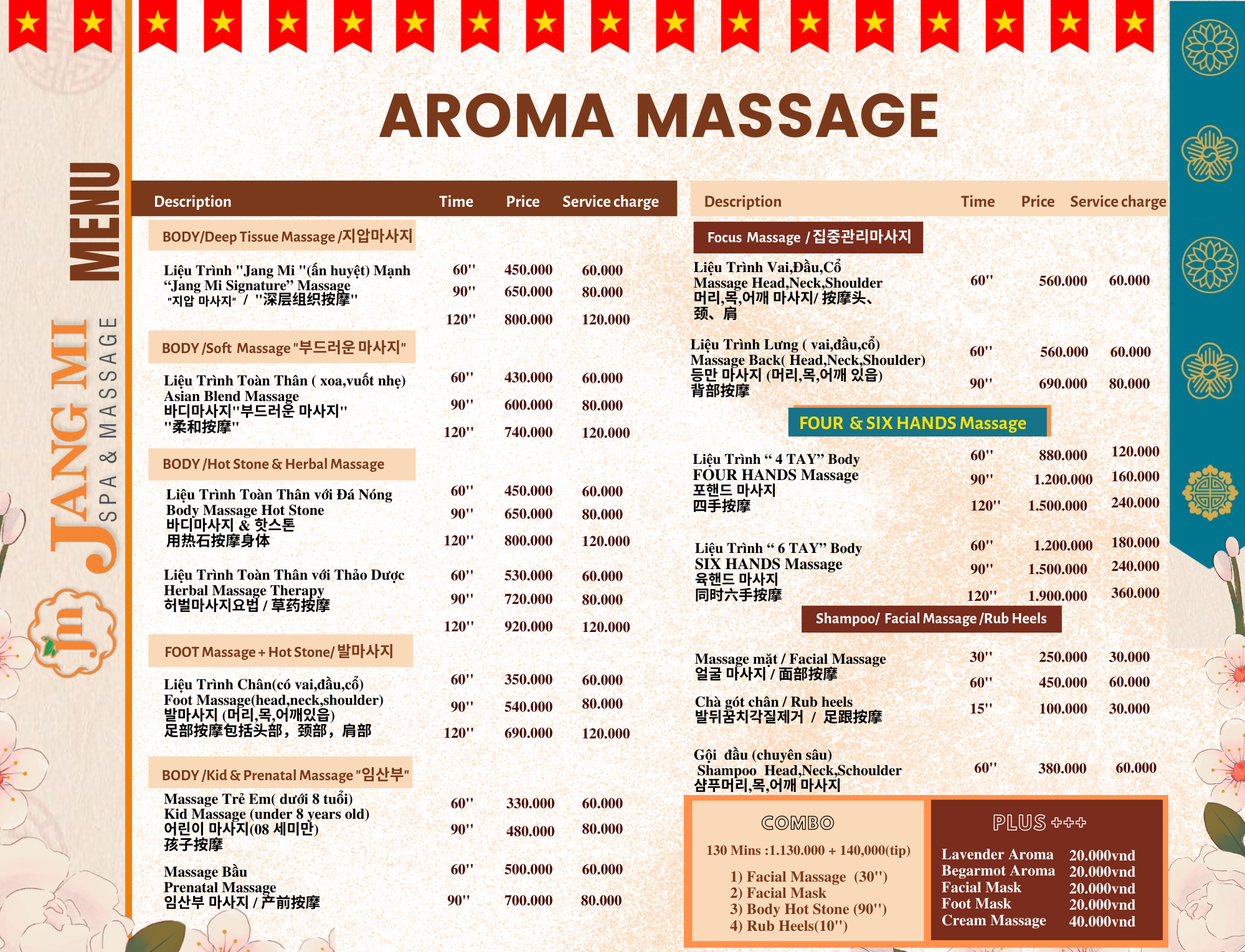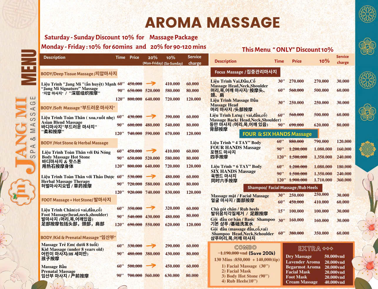 At Jang Mi Spa & Massage Da Nang, every customer is welcomed with respect and treated with love and care like precious roses. This massage facility takes pride in providing a soothing atmosphere and attentive care services, allowing each individual to experience perfect relaxation and mental rejuvenation. Jang Mi Spa & Massage Da Nang is not just a place to relieve stress but also a place to recharge energy and restore balance to the body and soul.”